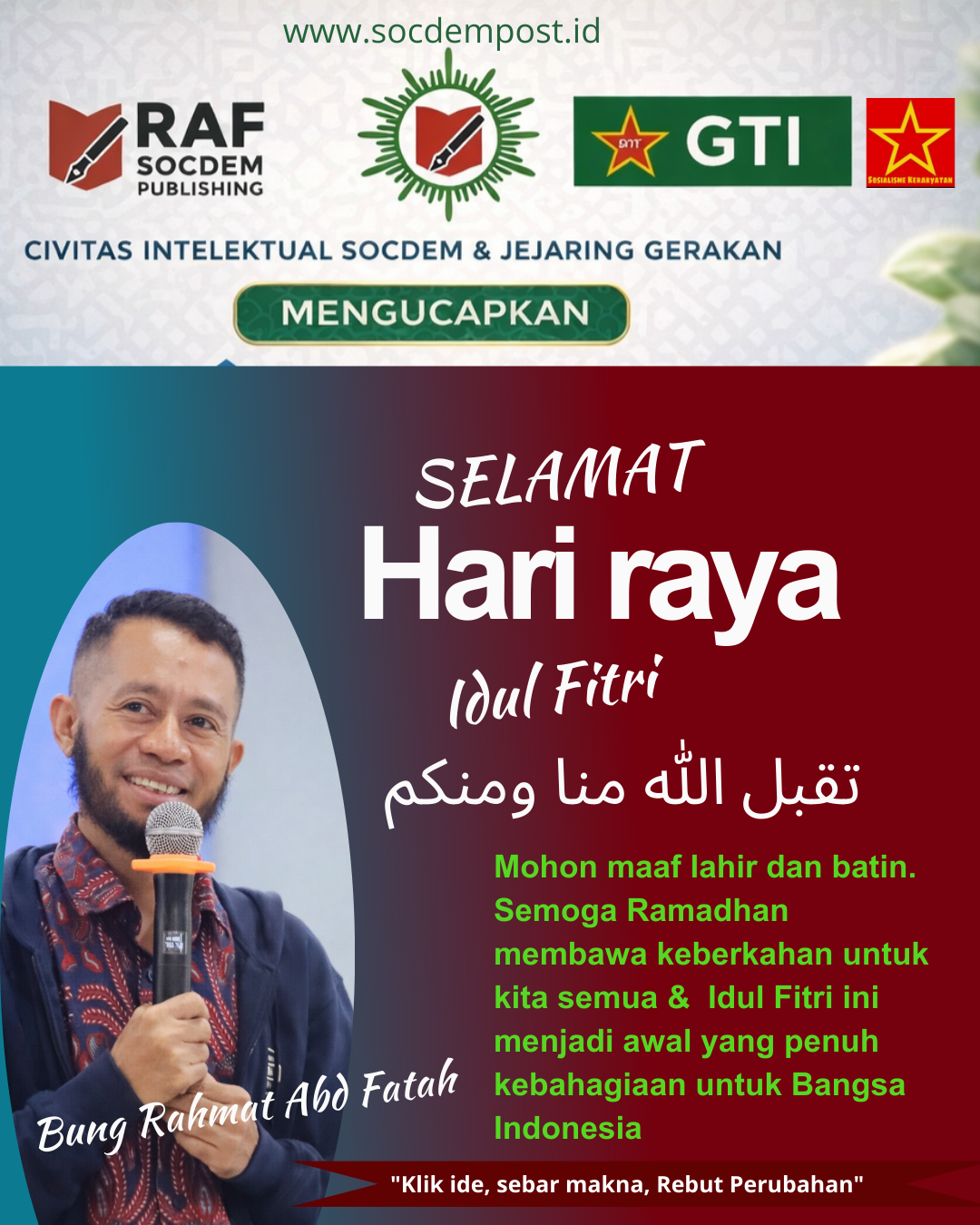 “Idul Fitri ialah Petanda sekaligus Penanda dimulainya Kesucian berfikir dan bertindak” .